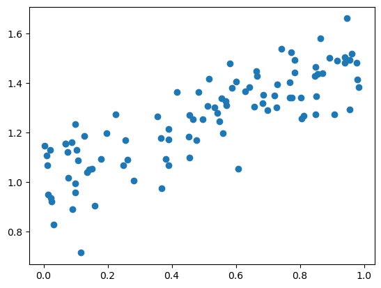 α, β, σ = 0.5, 1.0, 0.1 # Set the true intercept and slope.