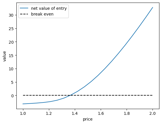 Let’s have a look at the net entry value as a function of price