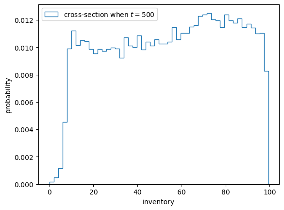 We will be interested in the distribution of the associated Markov process, which can be thought of as cross-sectional distributions of inventory levels across a large number of firms, all of which