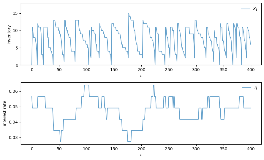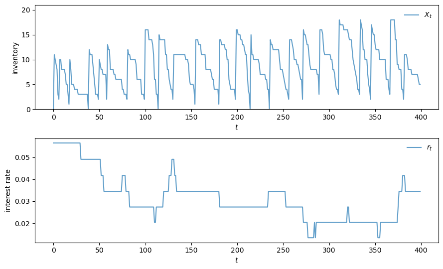 X[t+1] = np.maximum(X[t] - rand[t], 0) + σ_star[X[t], z_idx[t]]