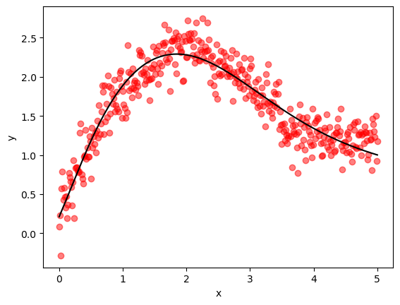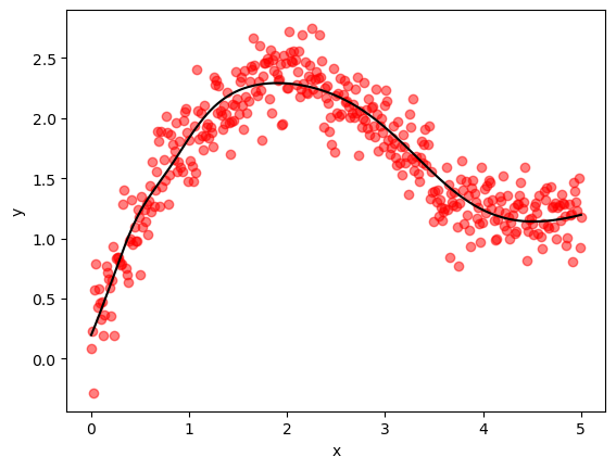 We use the routine from Simple Neural Network Regression with Keras and JAX to generate data for one-dimensional nonlinear regression.