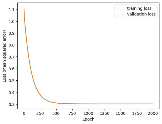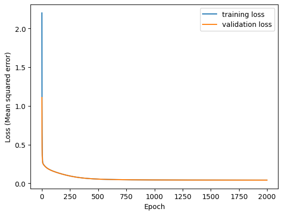 ax.set_ylabel('Loss (Mean squared error)')