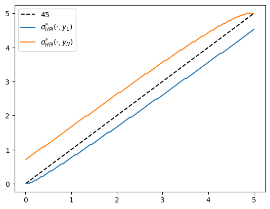 ax.plot(w_grid, w_grid[σ_star_hpi[:, -1]], label="$\\sigma^{*}_{HPI}(\cdot, y_N)$")