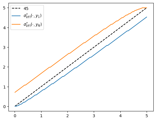 σ_vfi, vfi_time = run_algorithm(value_function_iteration, model, tol=1e-5)