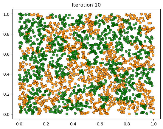 locations, iteration, key = simulation_loop(locations, types, key, params, max_iter)