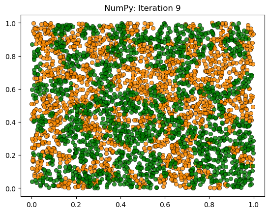plot_distribution(locations, types, f'NumPy: Iteration {iteration}')